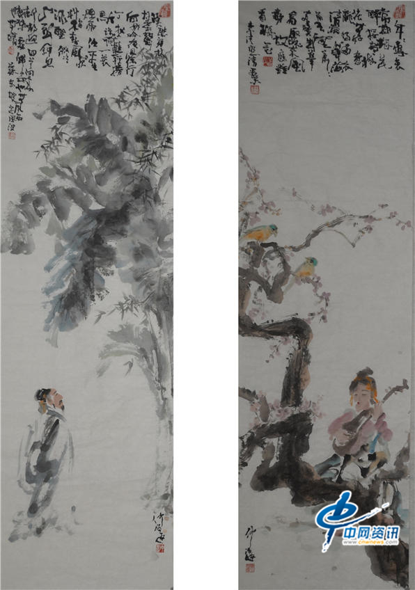 宋人词意竹梅图(250CM*80CM)两幅