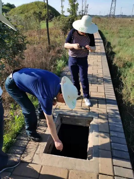 中央第七组生态环境保护督察组在湖南省衡阳水口山镇测试渠道水