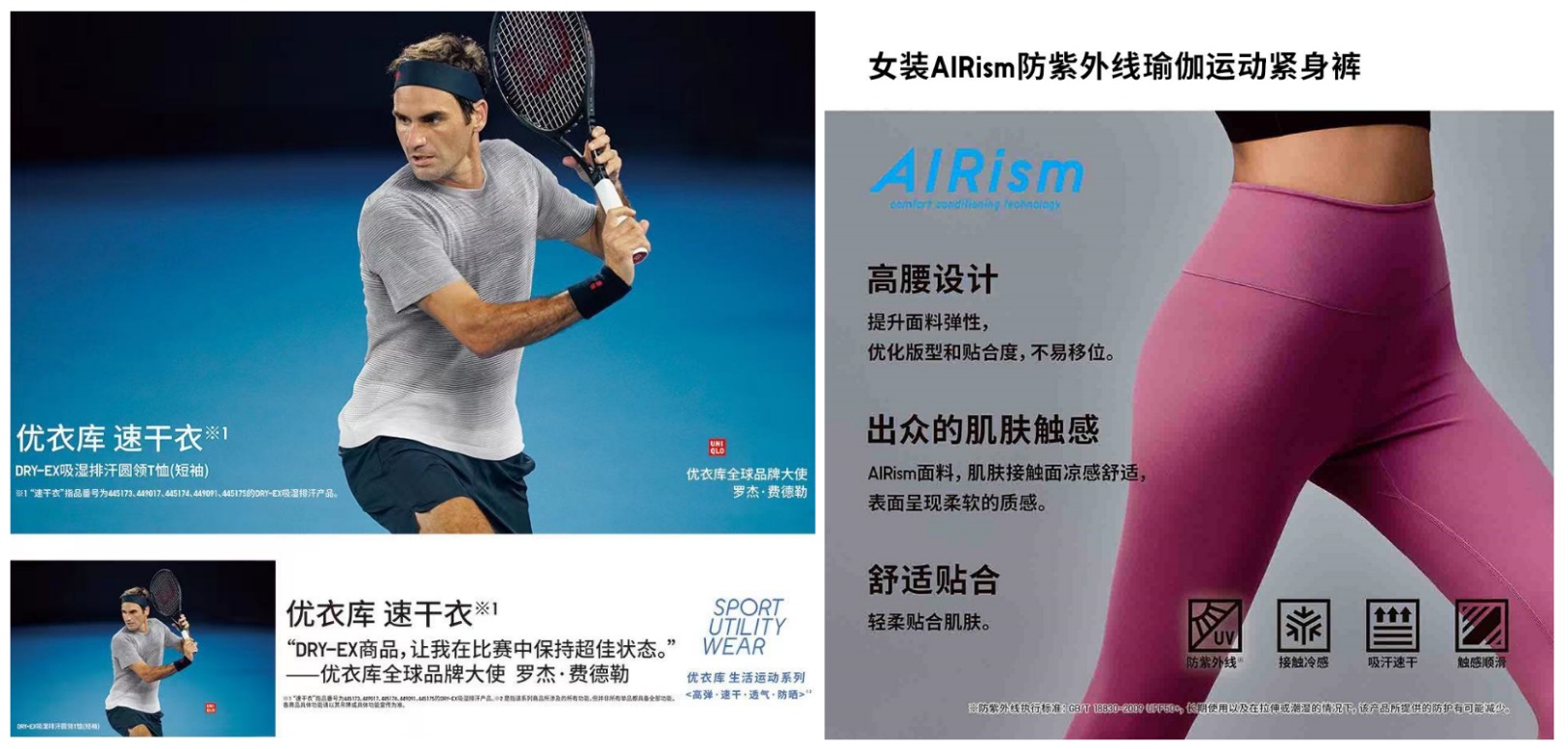 优衣库生活运动系列 采用高弹· 速干· 凉感· 防晒四大科技功能面料,以科技赋能生活。网球天王 费德勒同款速干衣/裤,1秒吸汗 高效速干,舒爽夏日运动,部分面料采用40%或80%再生聚酯纤维,加持可持续绿色生活。AIRism凉感瑜伽衣/裤,凉感透气 动静皆宜,跑跳拉伸自在随心。